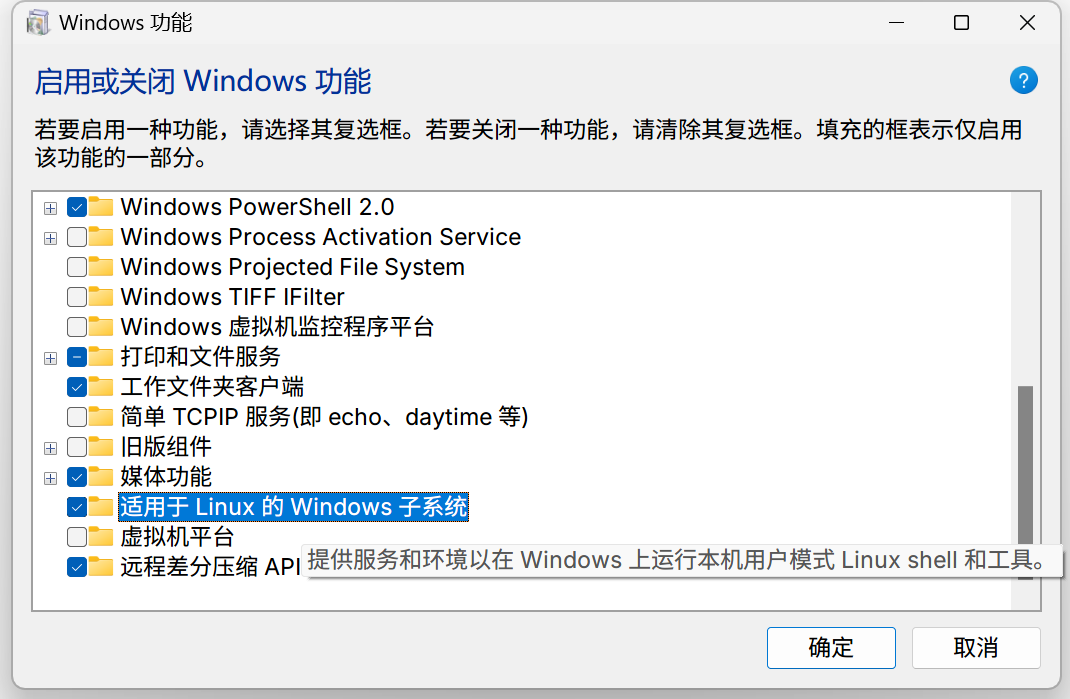 安装 WSL 开启功能