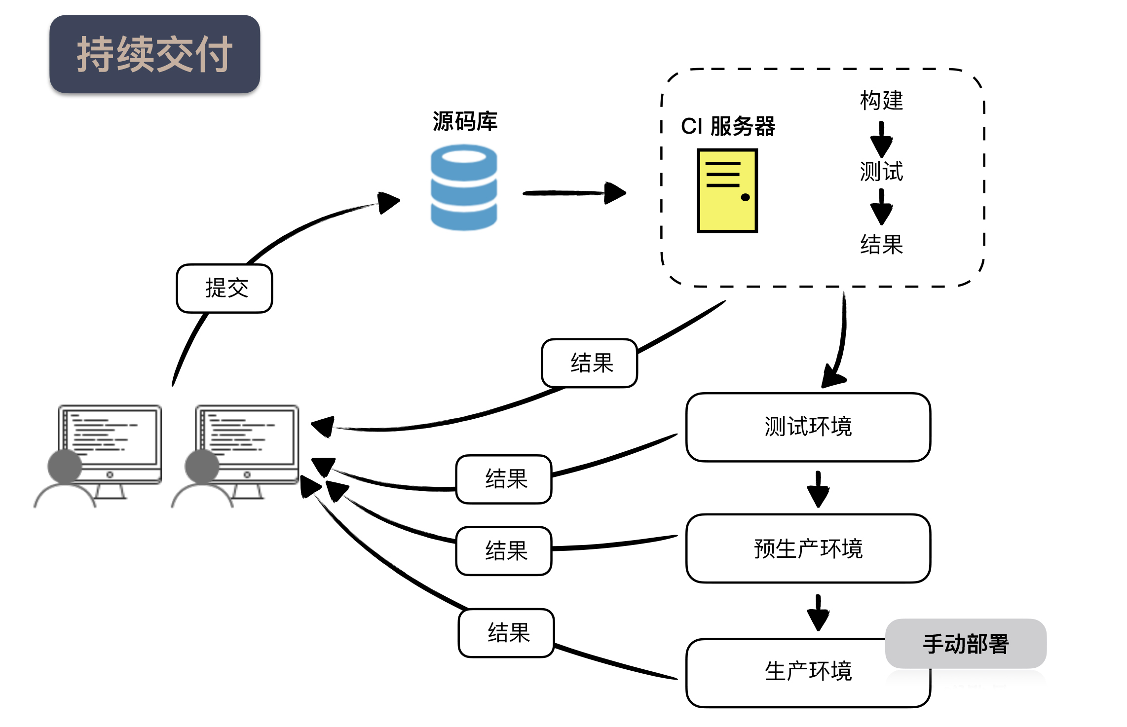 - 持续集成环境,持续集成是持续交付的前提,这个过程主要是执行基本的检查,打出一个可以发布的包